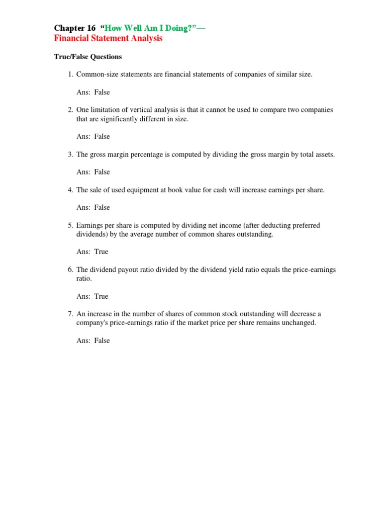 Ch16 Financial Statement Analysis Pdf Equity Finance Dividend